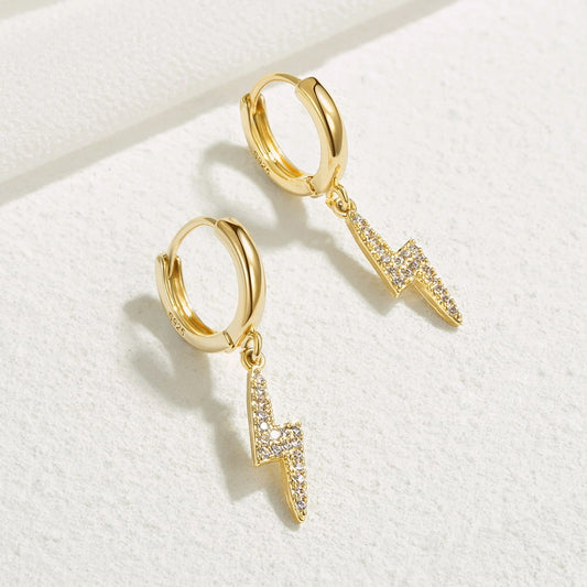 14K Gold Huggies Hoop Dangle Drop Earrings- Lightning Hoop