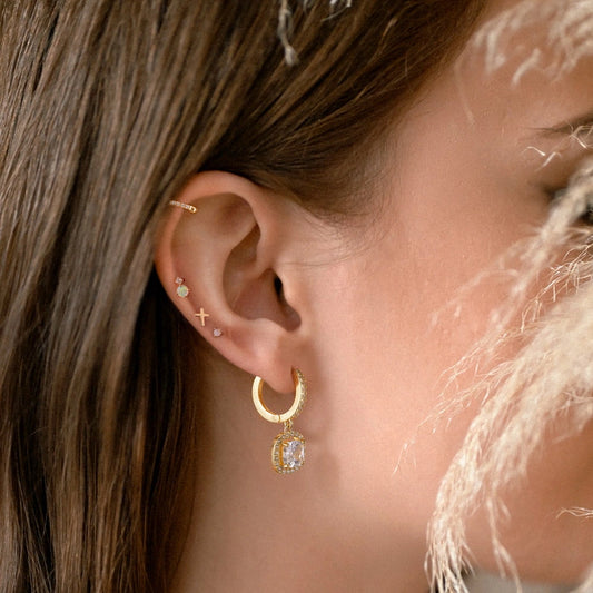 14K Gold Huggies Hoop Dangle Drop Earrings- Cross hoop