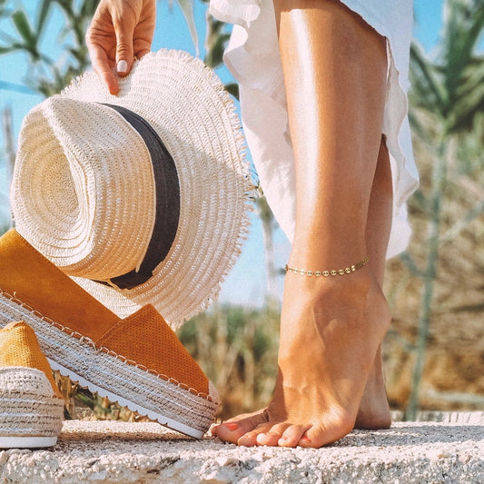 Dainty 14k Gold Plated Layering Evil Eye Anklets Set- Round Eyes+Sequin