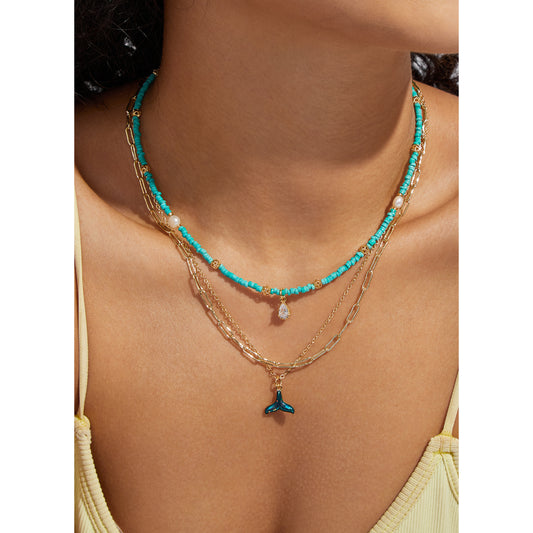 Summer Adjustable Gold Enamel Mermaid Pendant Necklace