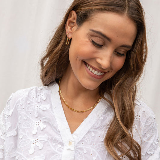 Dainty 14K Gold Layered Evil Eye Religious Necklace- Cuban Chain+Heart Eye