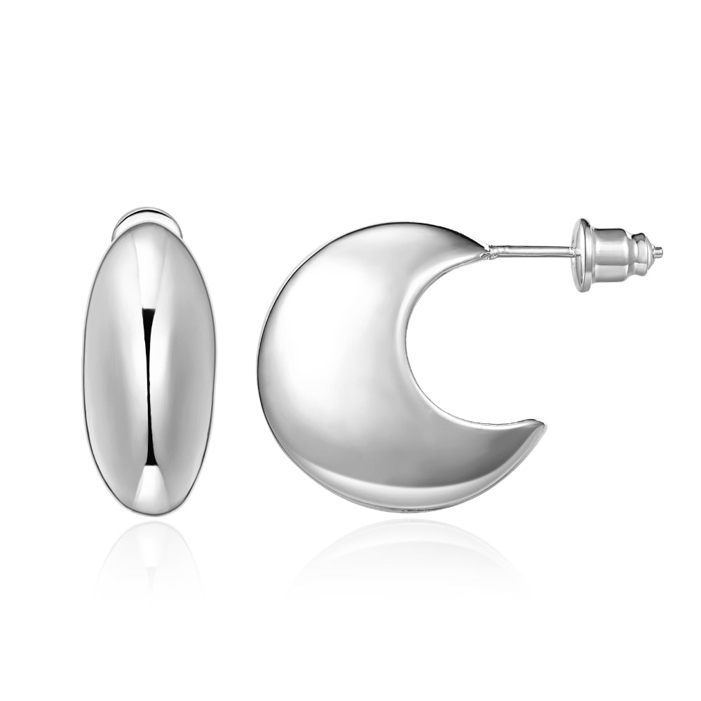 14K Gold Plated Lightweight Chunky Gold Hoop Earrings- Round Half Open