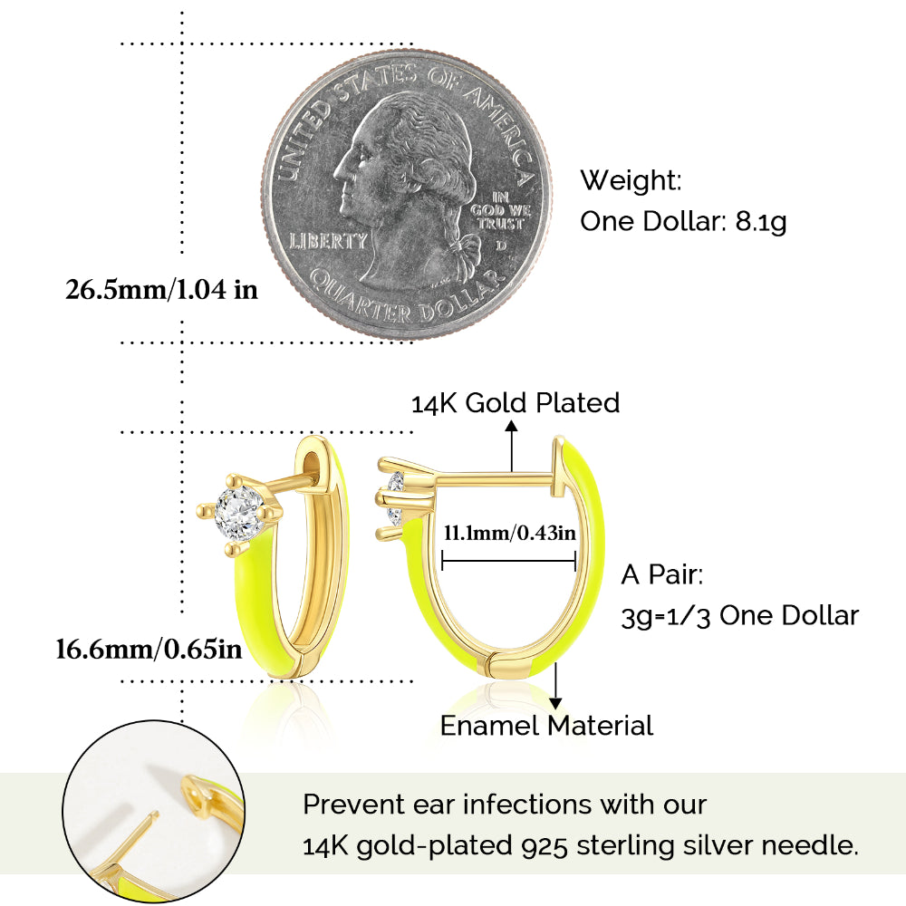 Gold Huggie Enamel Earrings Colorful Small Hoop Cuff Earrings-Lemon Yellow