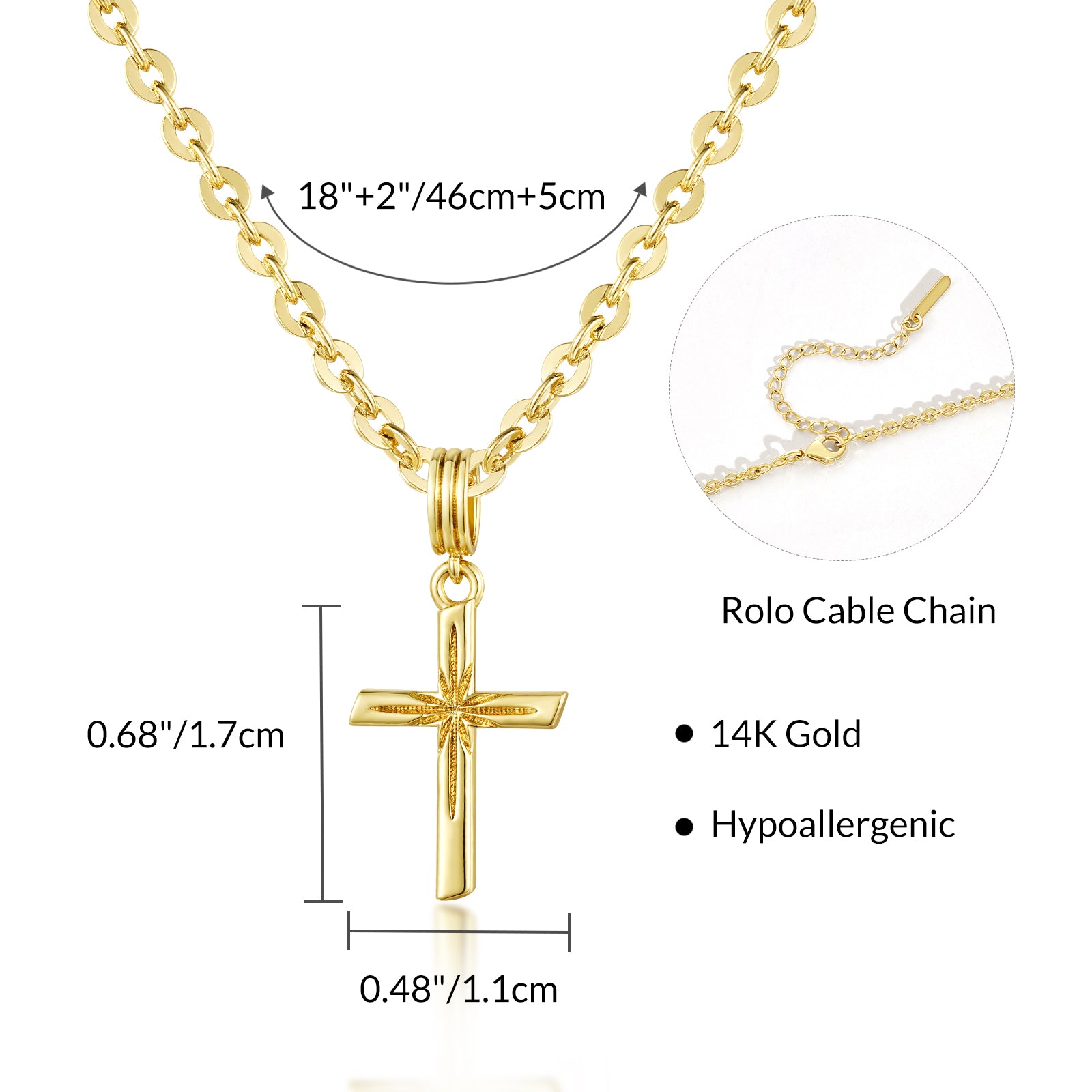 - Necklace Size: Length approx: 18 IN + extender: 2 IN, cross pendant size: 0.48"*0.68". Suit to wear in your daily life