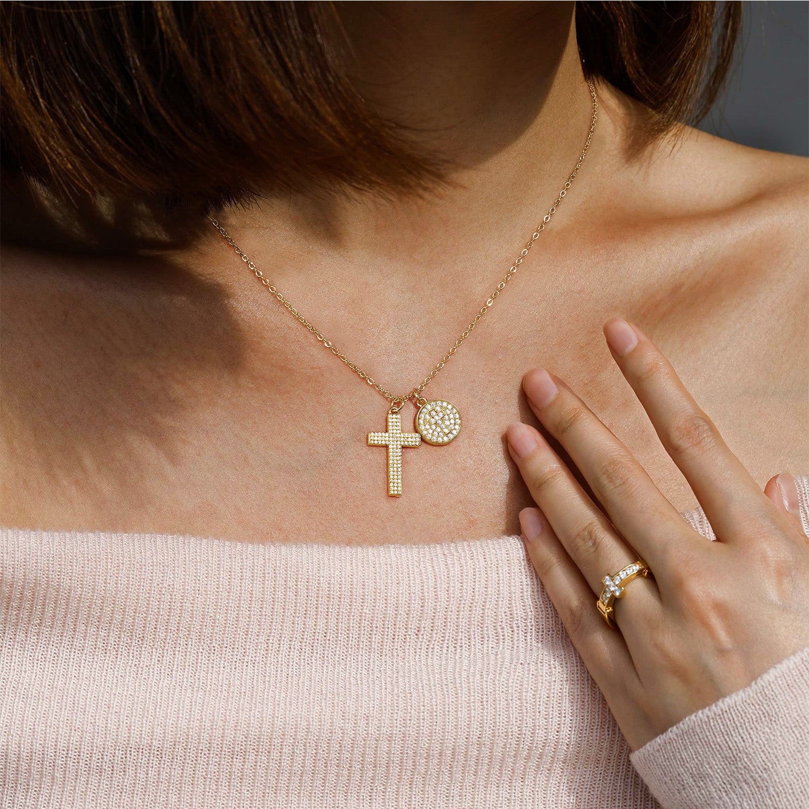 KissYan Cross Necklace Cubic Zirconia Faith Pendant