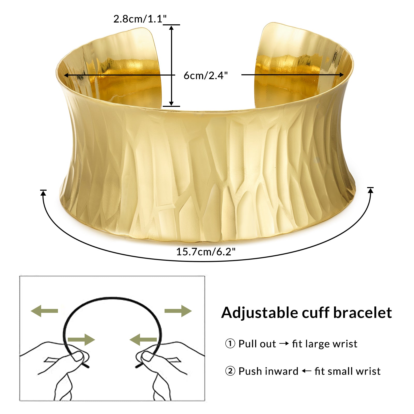 【FLEXIBLE ADJUSTMENT】 This women's bangle bracelet features a classic and aesthetically pleasing open cuff design, allowing you to flexibly adjust the size until it fits your wrist perfectly. It is also easy to put on and take off.