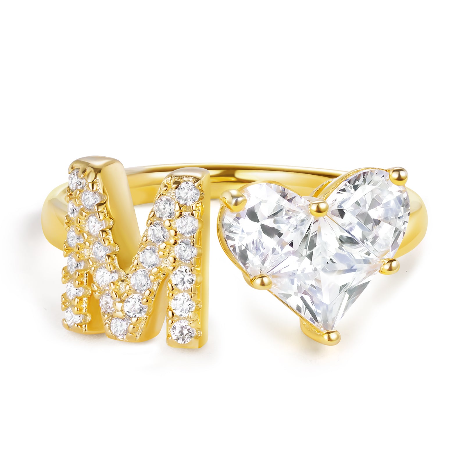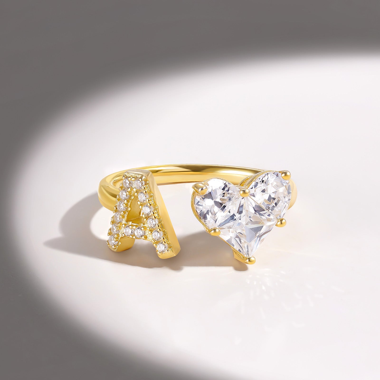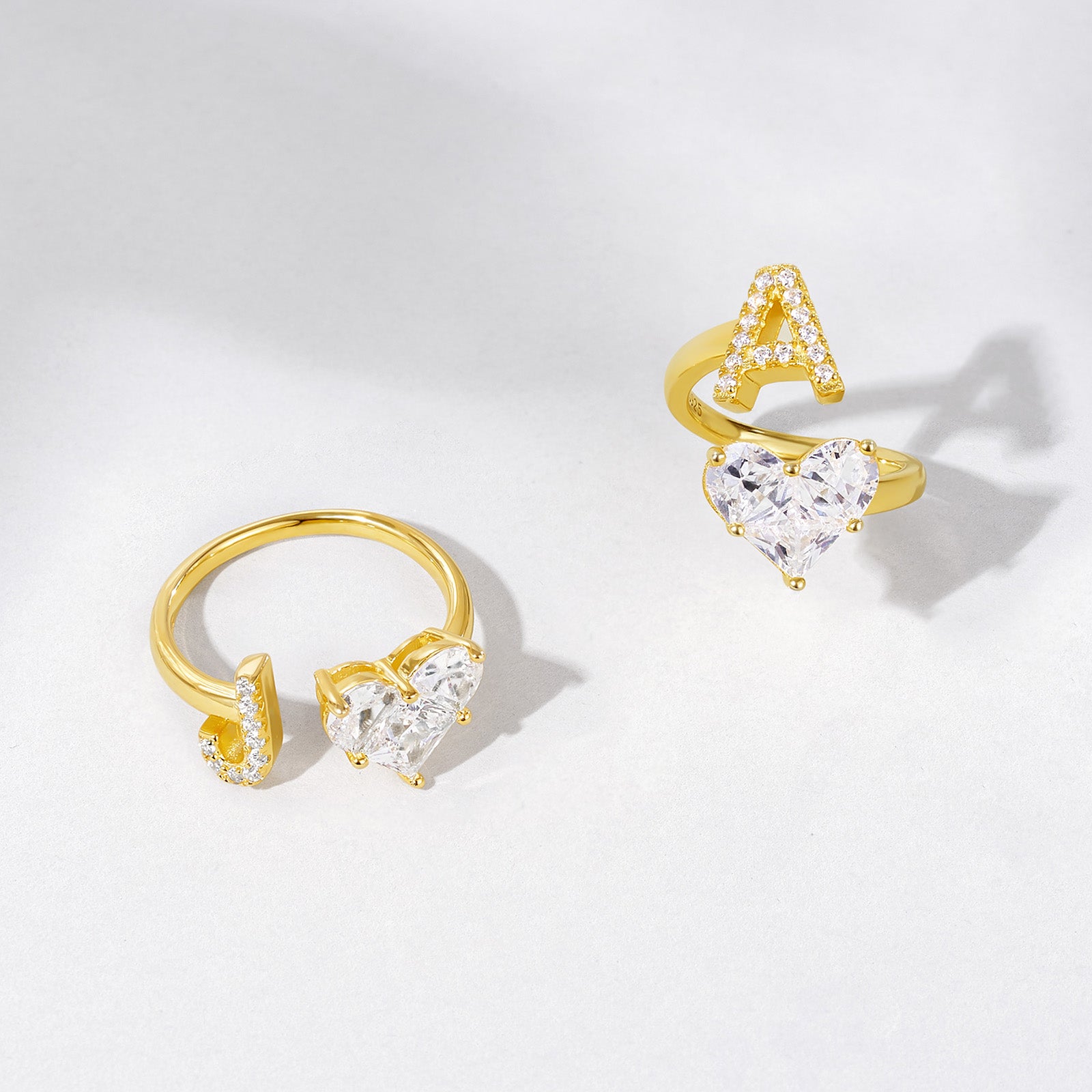 - Heart Initial Ring: A stylish symbol of love and individuality, combine initials with a heart shape. This elegant design transforms emotions into wearable art, perfect as a timeless keepsake or heartfelt gift. A silent bond, connecting souls