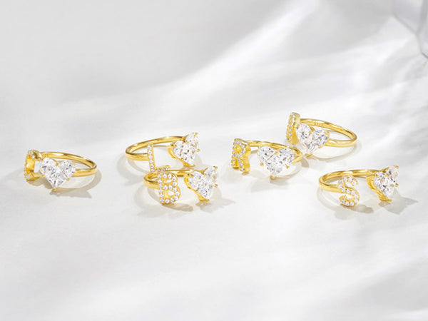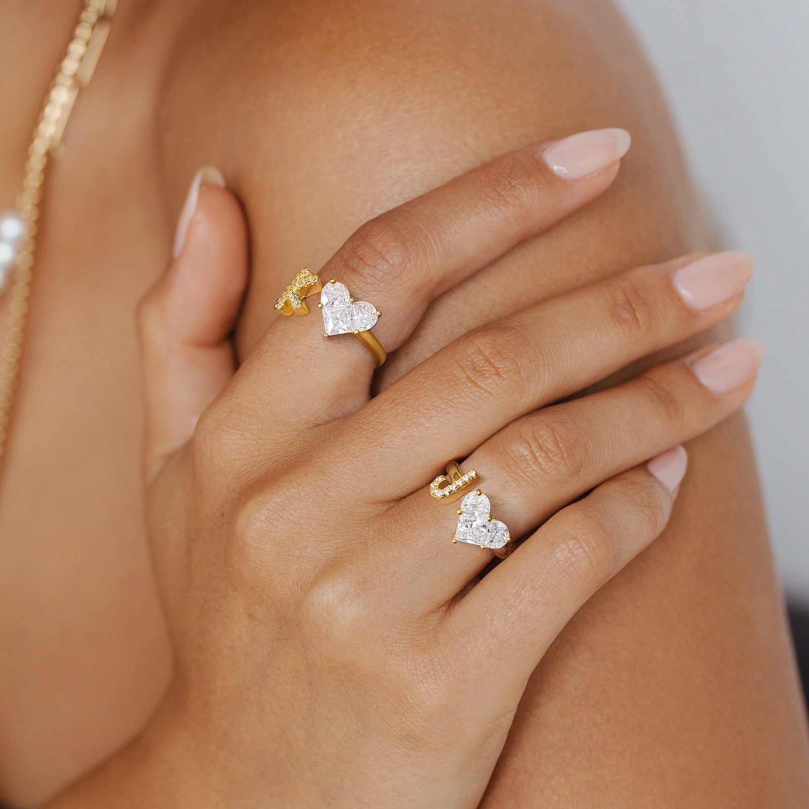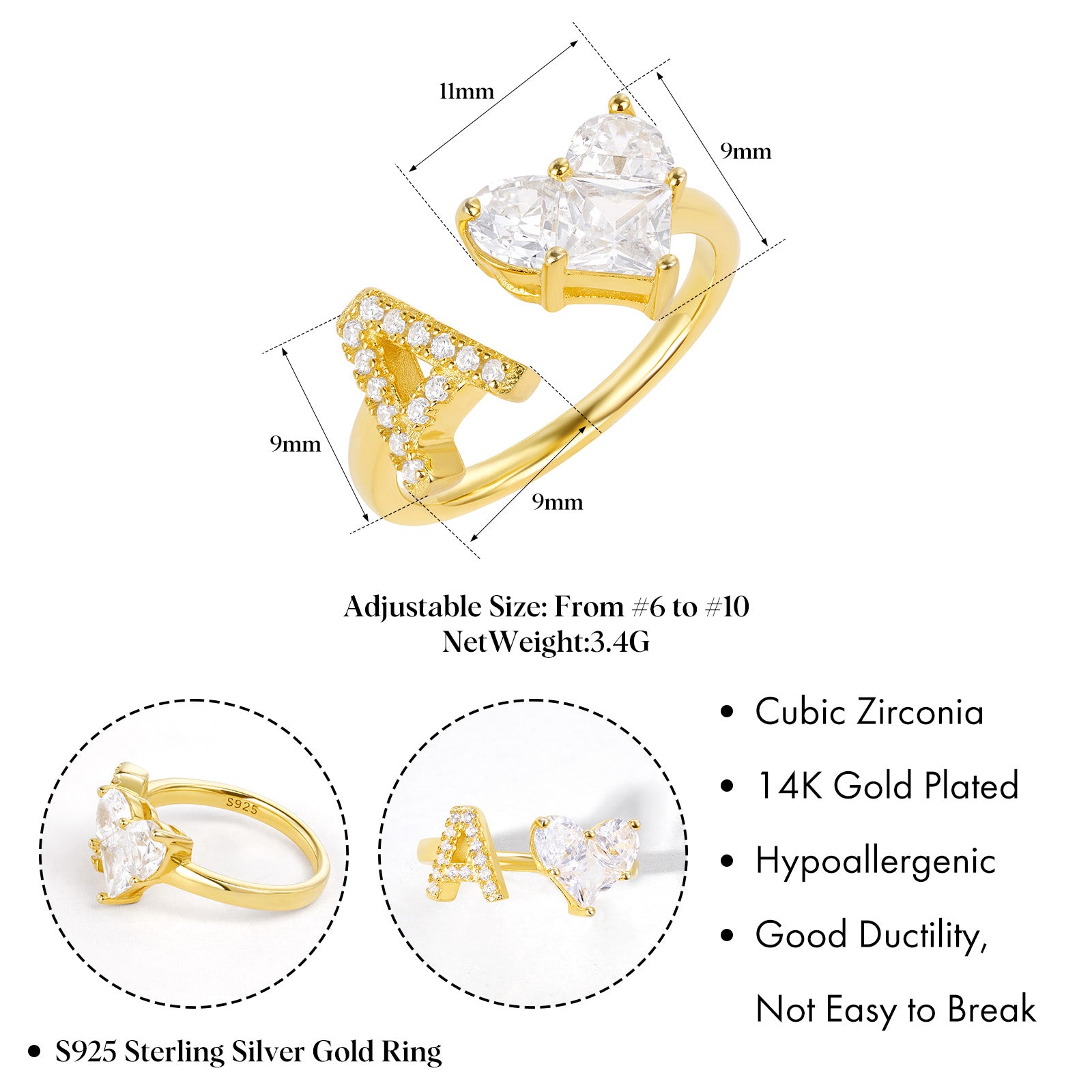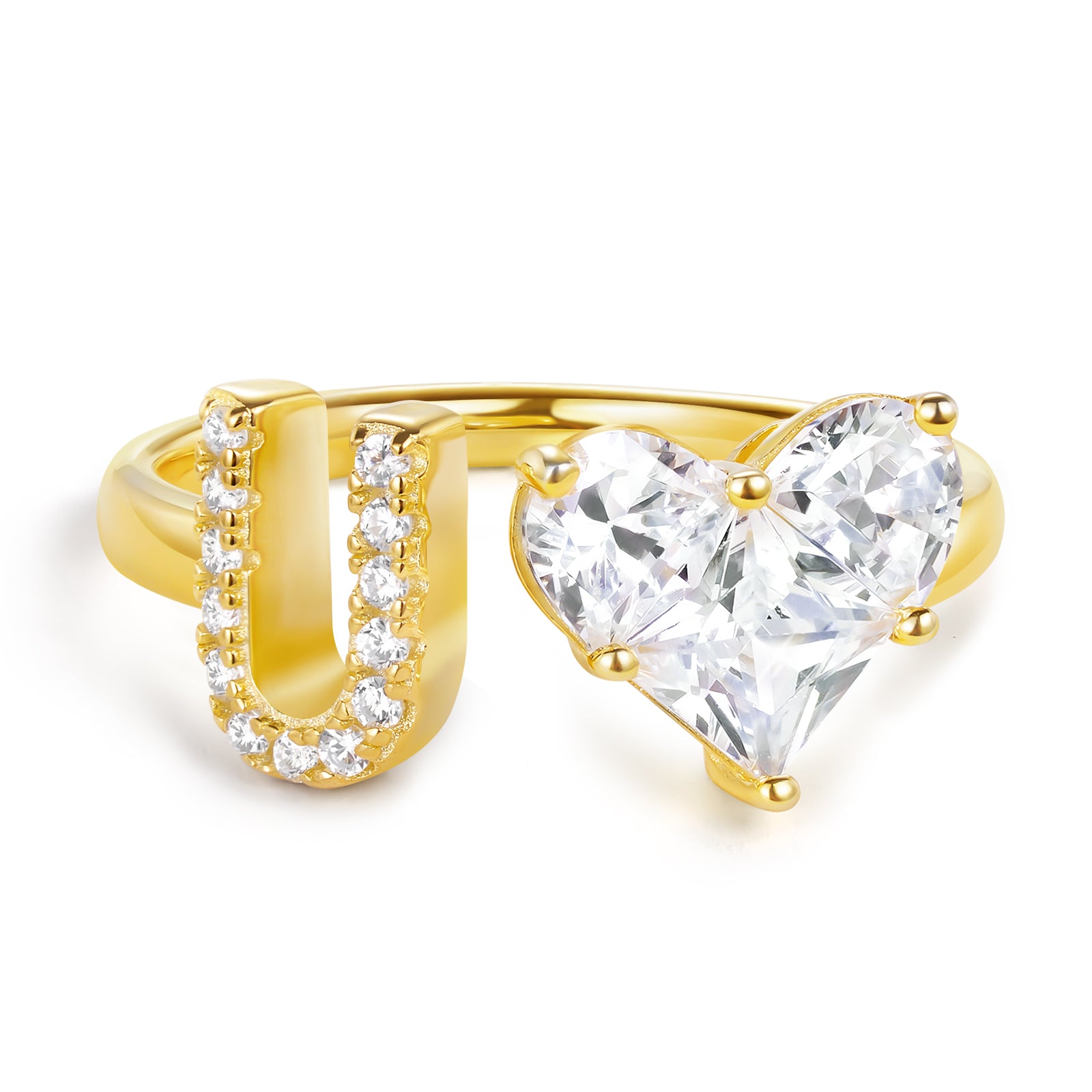 - Heart Initial Ring: A stylish symbol of love and individuality, combine initials with a heart shape. This elegant design transforms emotions into wearable art, perfect as a timeless keepsake or heartfelt gift. A silent bond, connecting souls